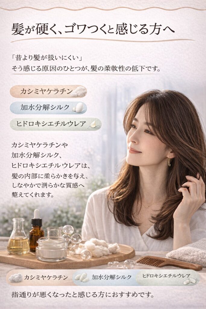 「昔よりパサつく」「広がりやすい」「ハリが出ない」