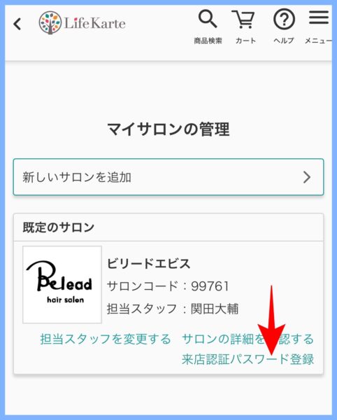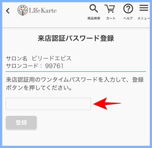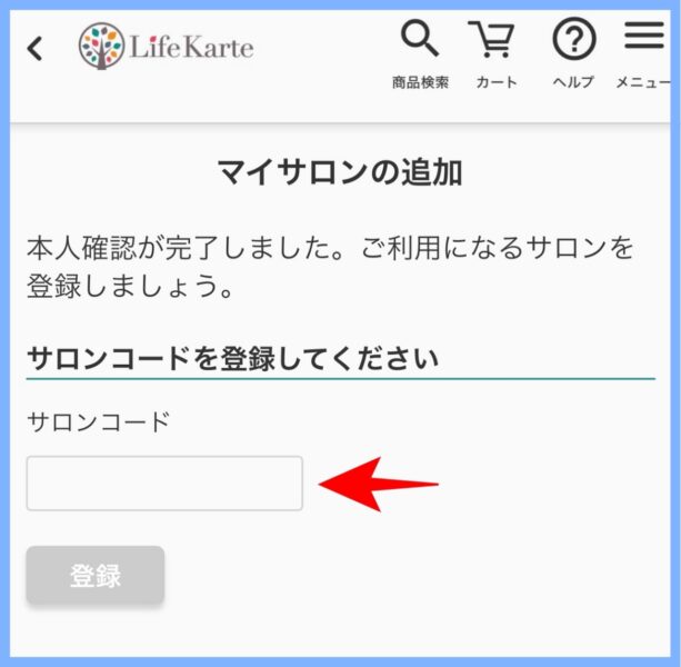 ④ サロンコードを入力して登録