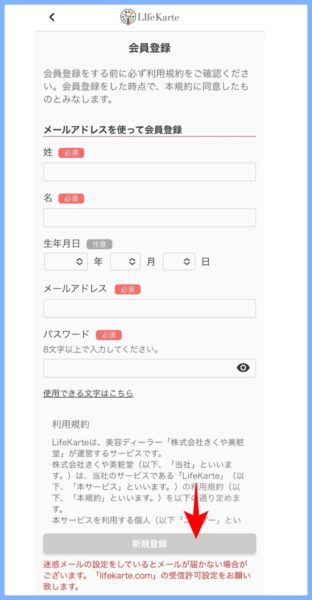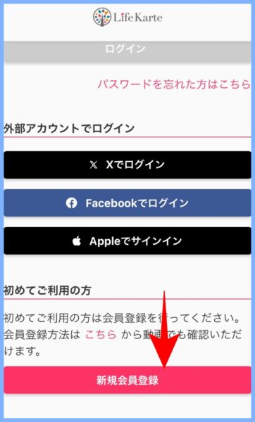 ライフカルテのトップ画面から【新規会員登録】 をタップしてください。