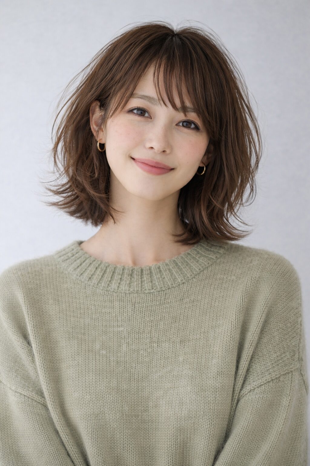 表面と顔まわりにレイヤーを入れることで、自然な毛流れと空気感が生まれ、作り込みすぎない品のある印象に仕上がります。