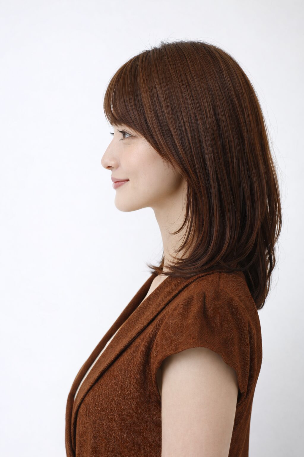 肩に触れる長さで自然にまとまる大人女性向けミディアムスタイルです。 毛先にやわらかな動きを残しながらも、広がりすぎないよう厚みを保つことで、上品で落ち着いた印象に仕上がります。 顔まわりは流れをつけて軽さを出しているため、重く見えず自然な華やかさが生まれます。 髪質の変化で「パサつきやすい」「まとまりにくい」と感じ始めた方にも扱いやすく、無理なく整うデザインです。 白髪が気になり始めた方にも、暗くしすぎず艶を感じるカラー設計と相性がよく、落ち着きと柔らかさを両立できます。 大きく変えなくても、整うことで印象が上品に整う大人世代向けミディアムです。