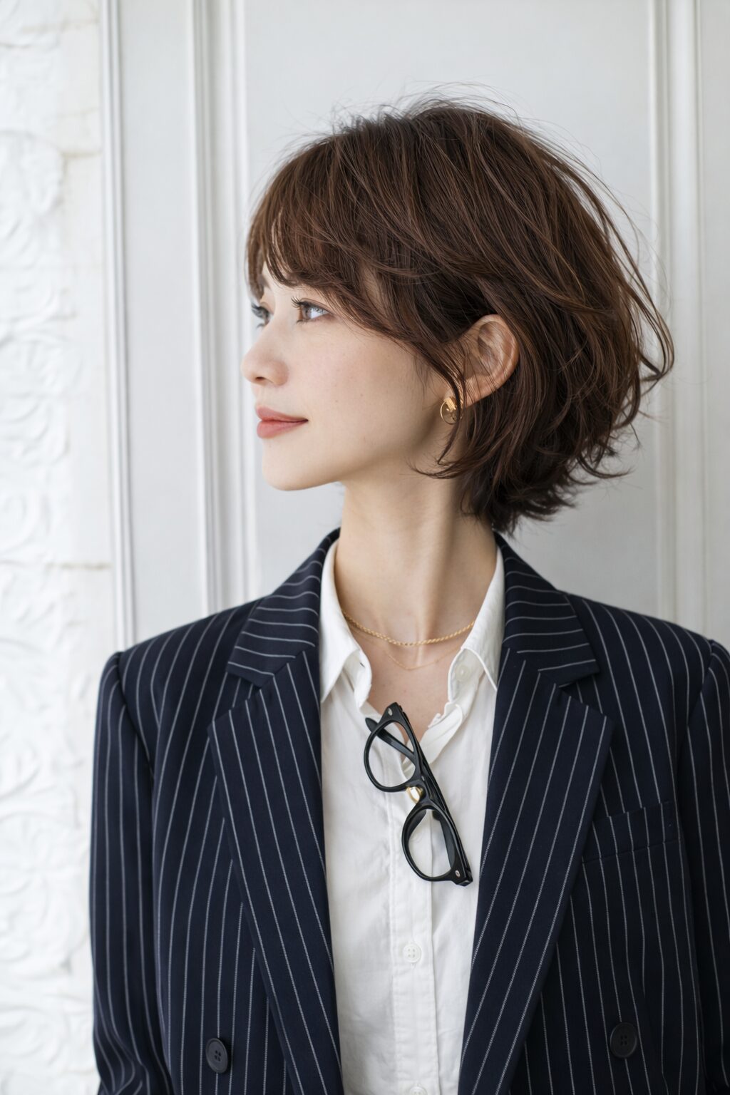 短すぎず女性らしさを保てる長さで、若作りにならない上品な軽やかさを表現しています。