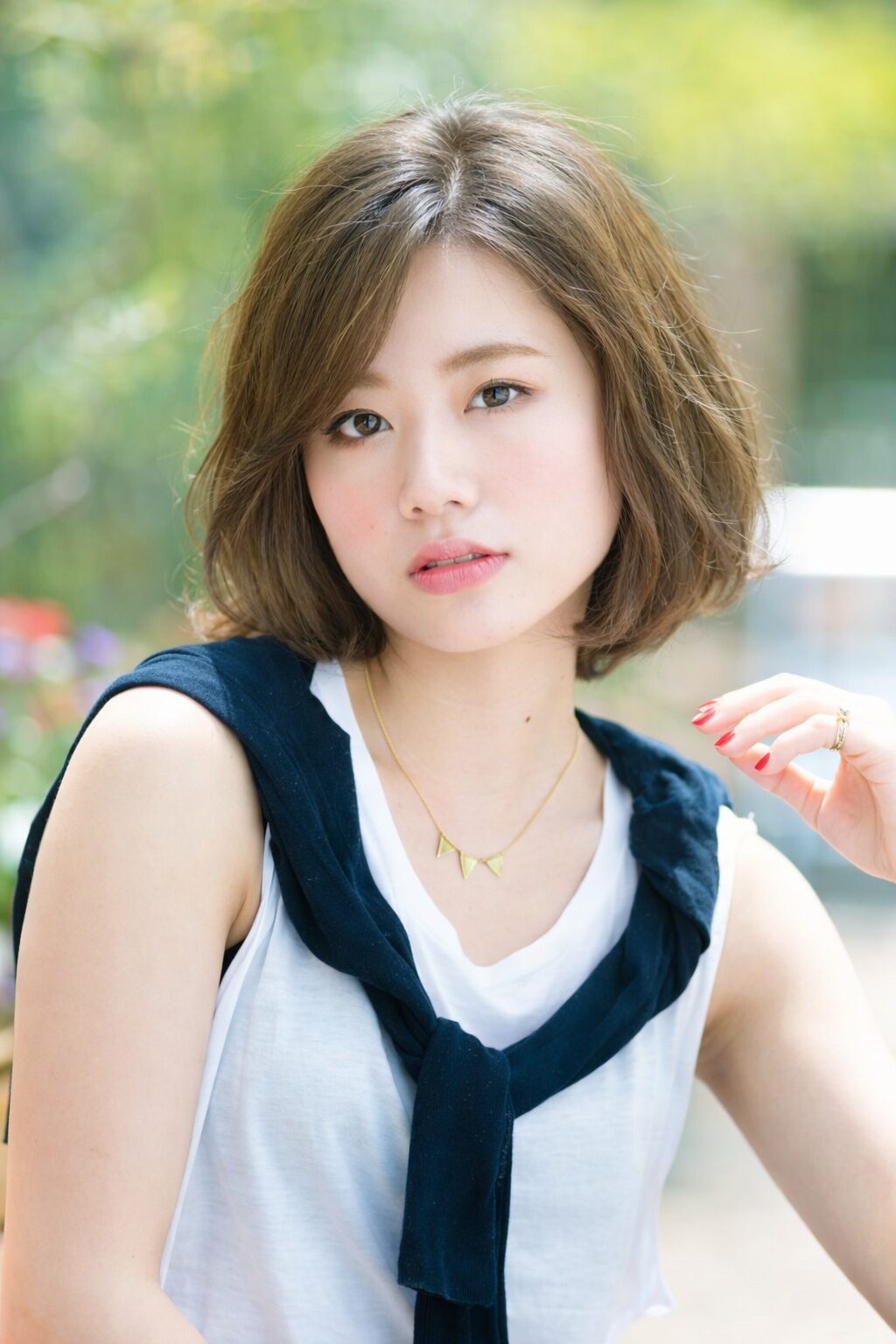 首元をきれいに見せる、前下がりベースのくびれボブ。