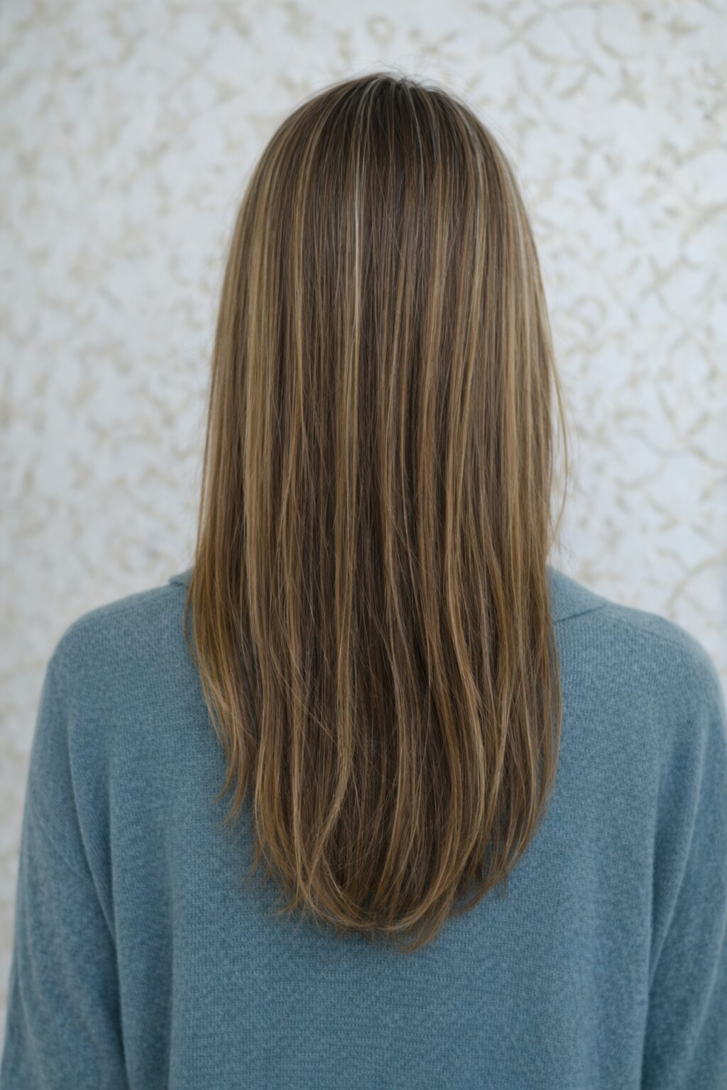 顔まわりから毛先にかけて緩やかにつながるライン設計で、長さを保ちながらも重く見えない軽やかさを演出します。