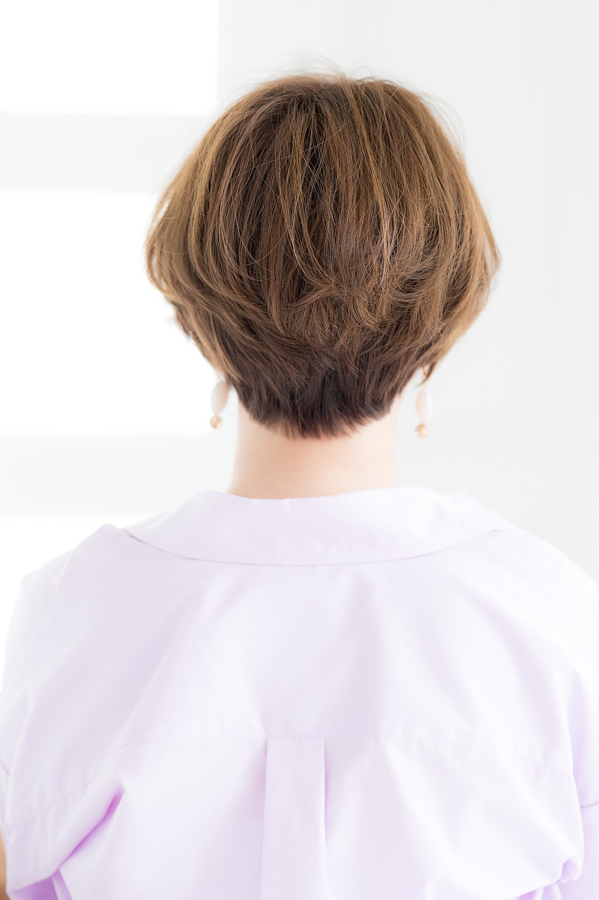 首元をすっきり見せる、コンパクトな大人ショート。